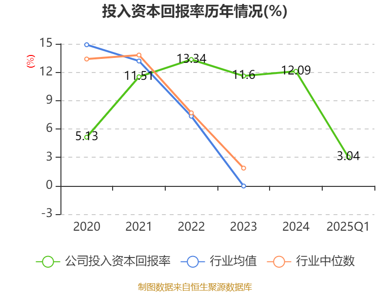 盈利能力方面, 2025年一季度公司加权平均净资产收益率为3.25%,同比上升0.35个百分点。公司2025年第一季度投入资本回报率为3.04%,较上年同期上升0.51个百分点。