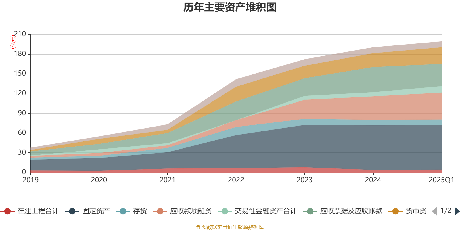 资产重大变化方面,截至2025年一季度末,公司应收票据及应收账款较上年末减少11.57%,占公司总资产比重下降3.13个百分点;应收款项融资较上年末增加14.74%,占公司总资产比重上升1.79个百分点;固定资产较上年末减少0.07%,占公司总资产比重下降1.64个百分点;交易性金融资产合计较上年末增加54.69%,占公司总资产比重上升1.6个百分点。
