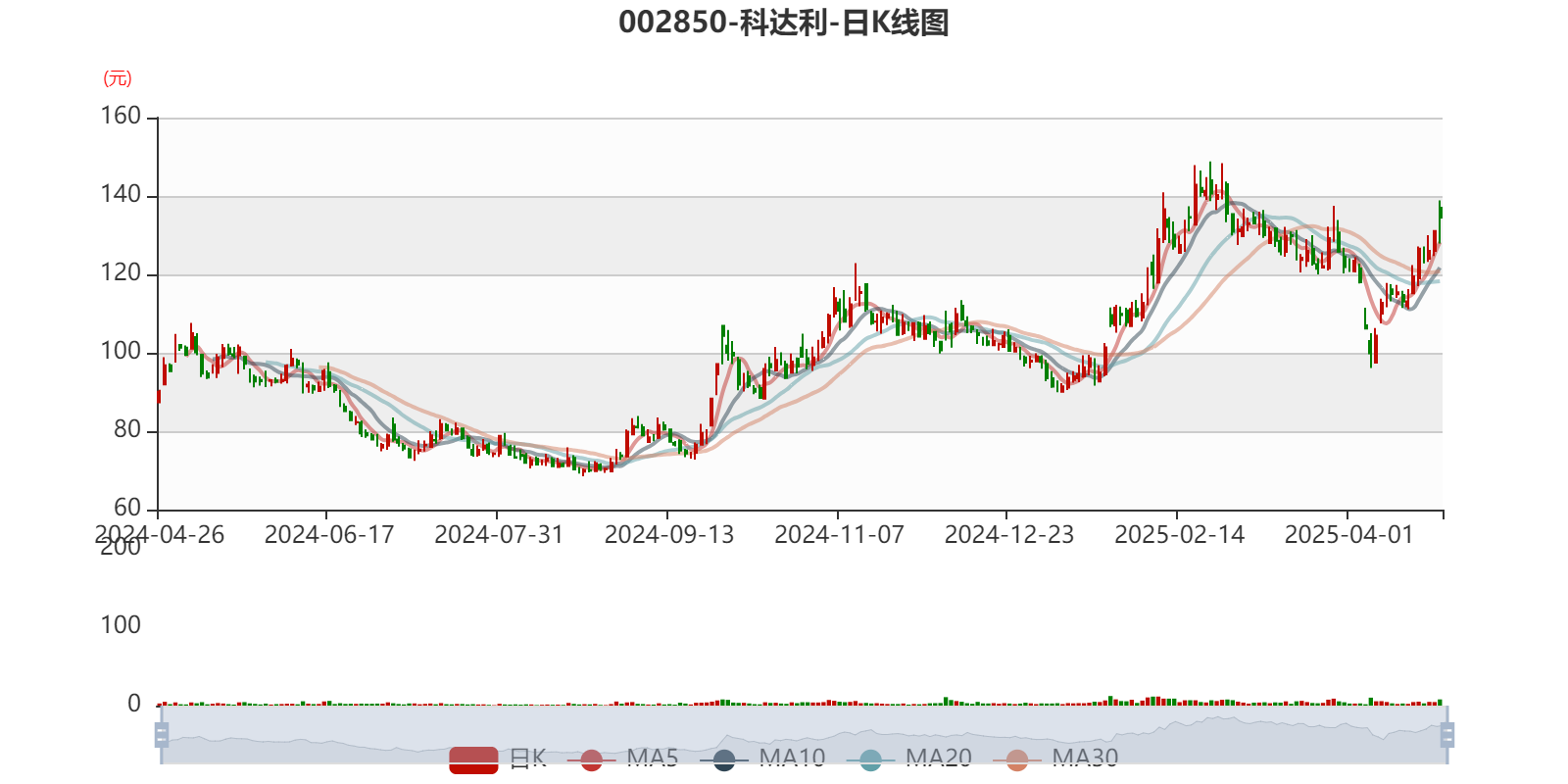 以4月25日收盘价计算,科达利目前市盈率(TTM)约为23.72倍,市净率(LF)约2.99倍,市销率(TTM)约2.93倍。