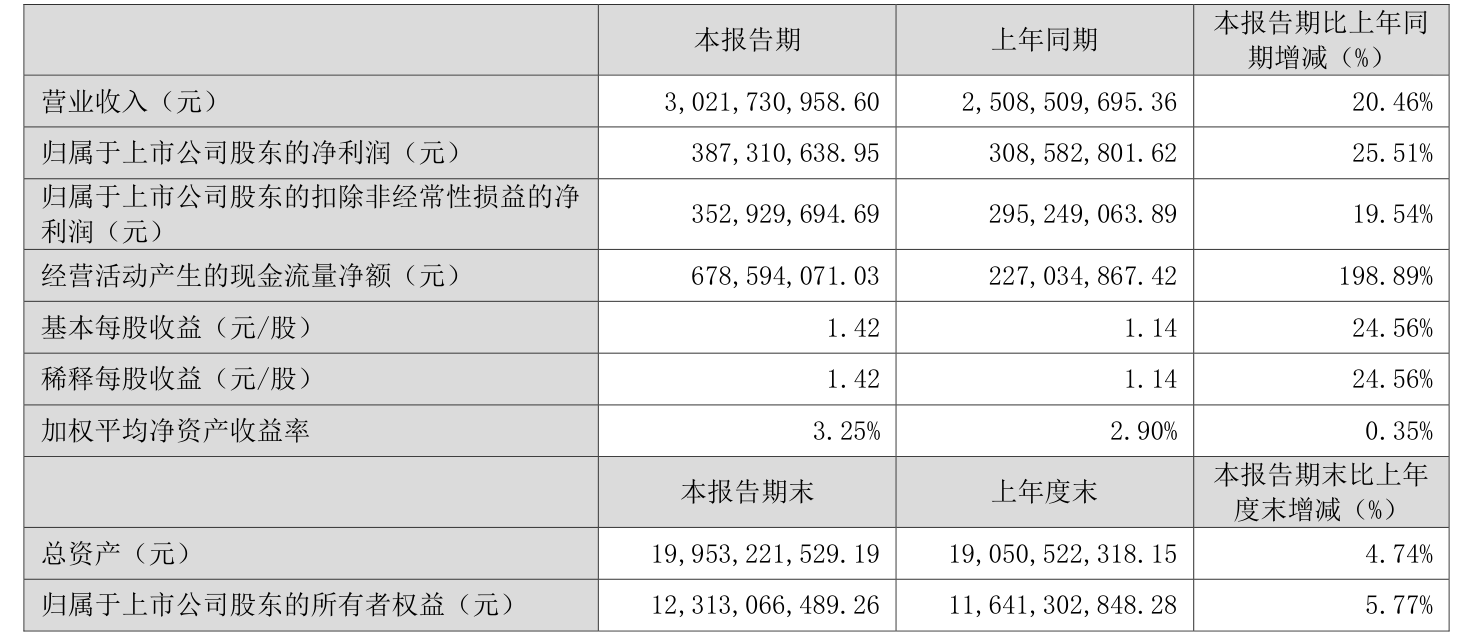 中证智能财讯科达利(002850)4月26日披露2025年第一季度报告。公司实现营业总收入30.22亿元,同比增长20.46%;归母净利润3.87亿元,同比增长25.51%;扣非净利润3.53亿元,同比增长19.54%;经营活动产生的现金流量净额为6.79亿元,同比增长198.89%;报告期内,科达利基本每股收益为1.42元,加权平均净资产收益率为3.25%。