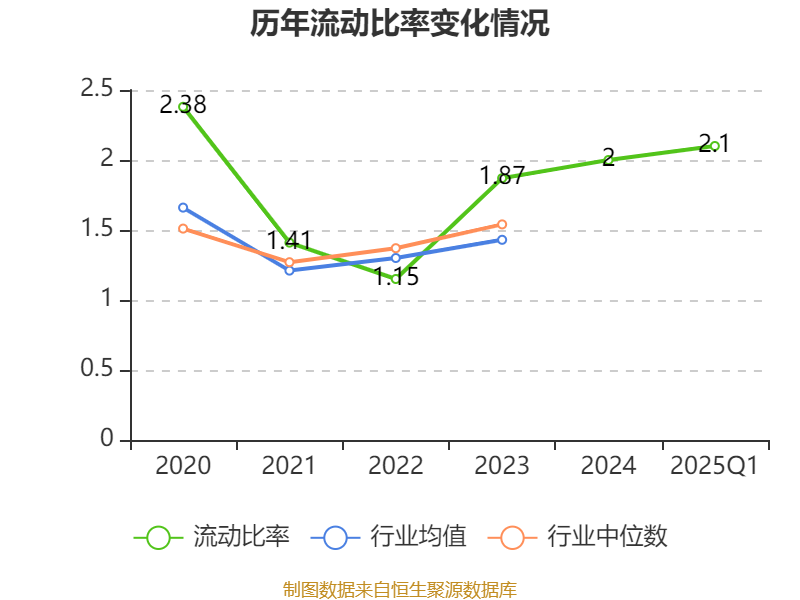 2025年第一季度,公司流动比率为2.1,速动比率为1.95。